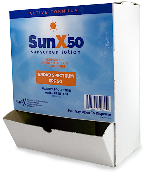 SunX® 50 is rated SPF 50 (Sun Protection Factor),SunX spf50 lotion is Oil free, non-greasy, Water/Sweat Resistant, PABA free. SunX also passed lineman's glove testing. Cedar fragrance discourages insects and contains Aloe Vera Gel and Vitamin E.
