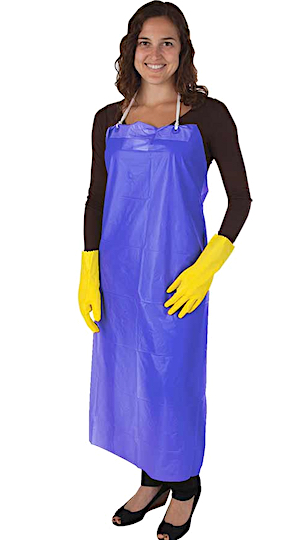 Ideal for a variety of light duty jobs the 6 Mil. Blue Vinyl Apron is lightweight and durable. Used in food preparation, janitorial and automotive applications. Size 35" x 45".